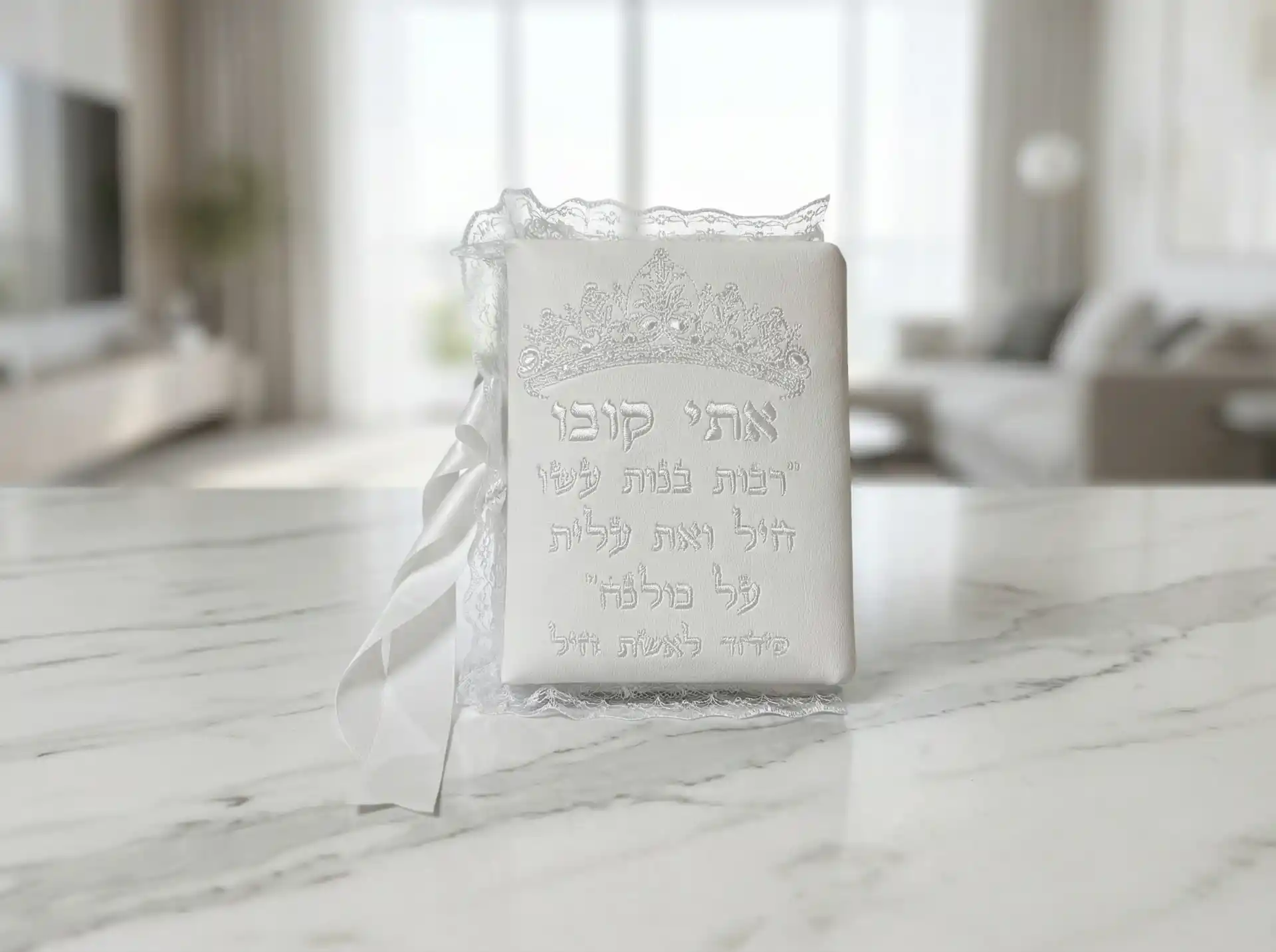 סידור לאשת חיל/ בת ישראל. עם כל התפילות לנשים ,דפים מהודרים  כולל תהילים! הסידור עטוף בד דמוי עור עם רקמת שם אישית (עד 3 מילים). גודל הסידור הוא סטנדרטי 17 על 12 ס"מ בנוסח עדות המזרח.