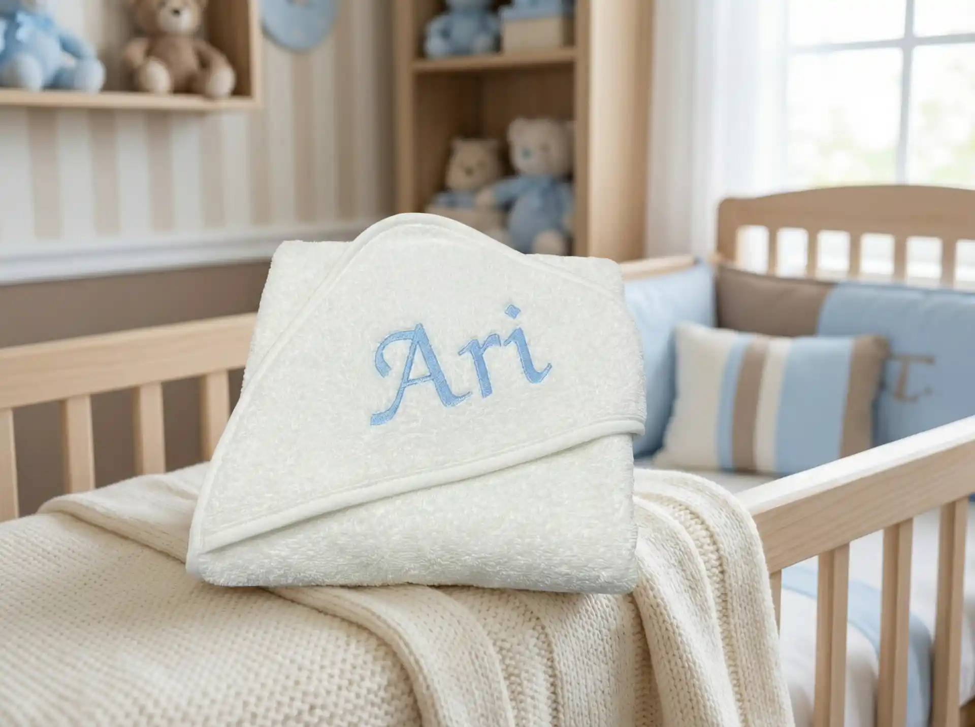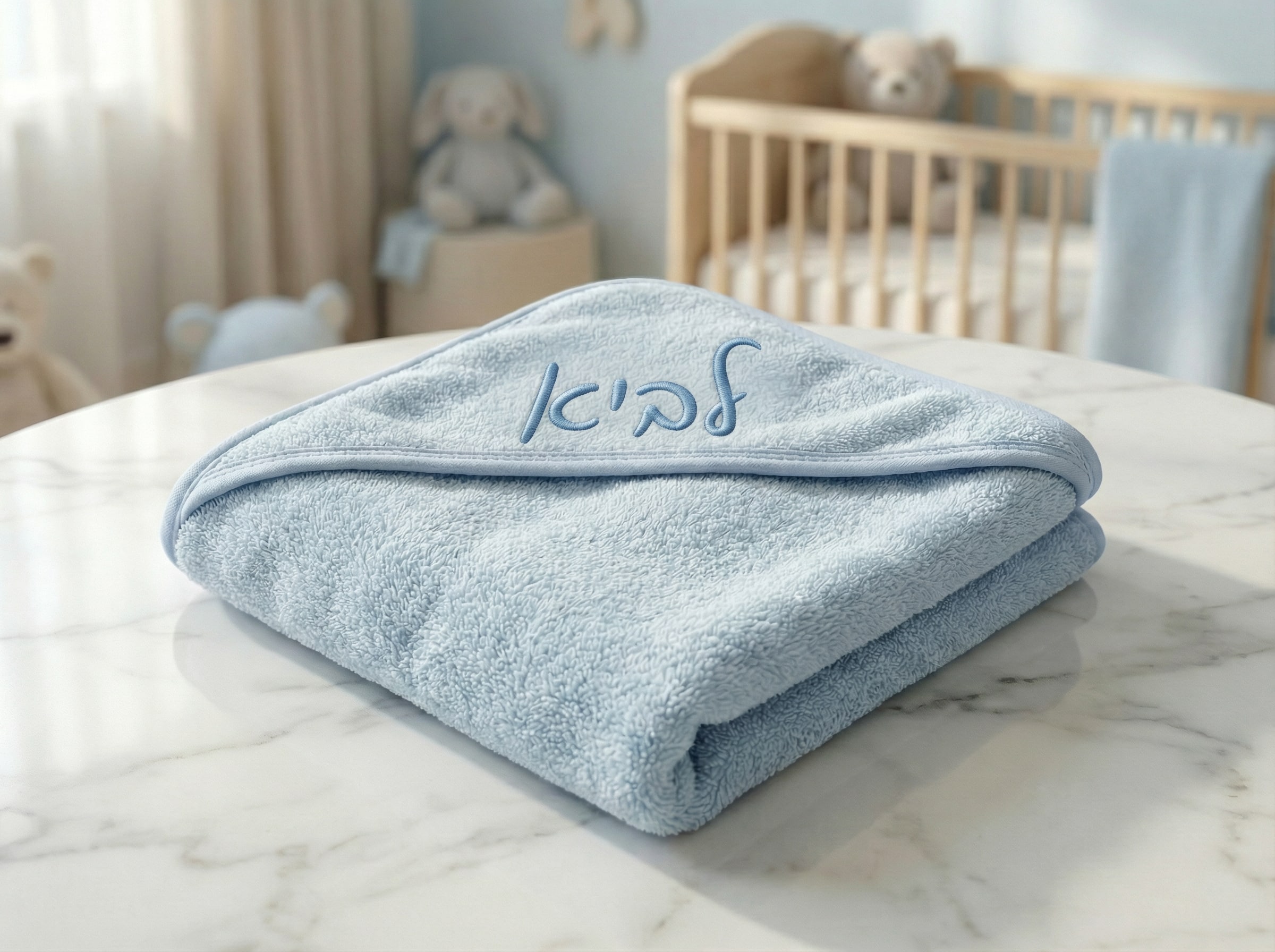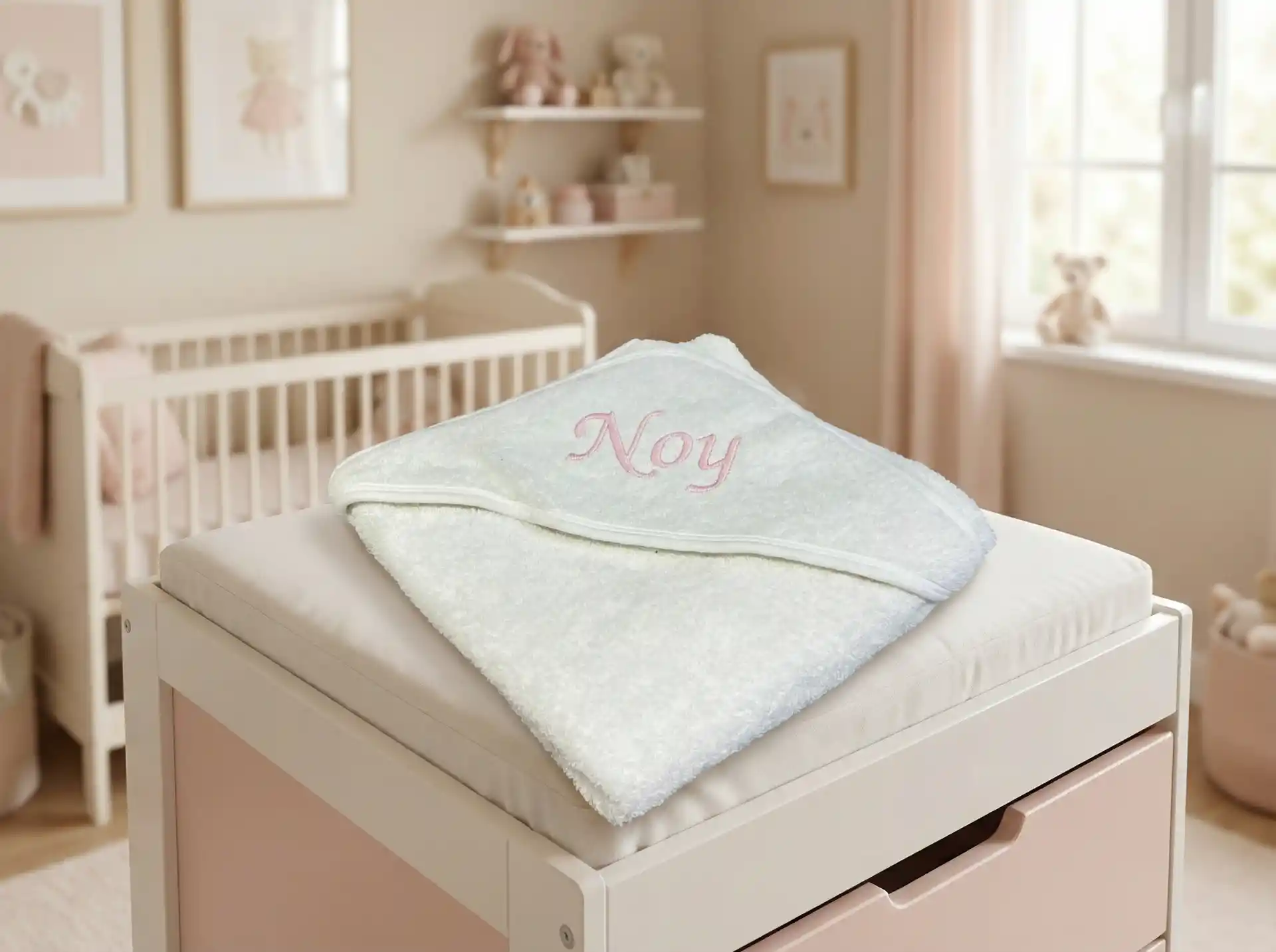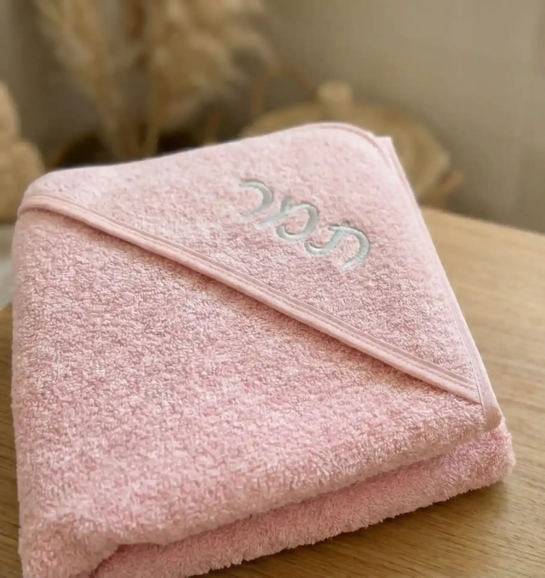 מגבת קפוצון 100% כותנה עם רקמת שם. ניתן לבחור צבע מגבת וצבע רקמה, המגבת במלאי בצבעים וורד, תכלת  ולבן. גודל המגבת  70X75 .
