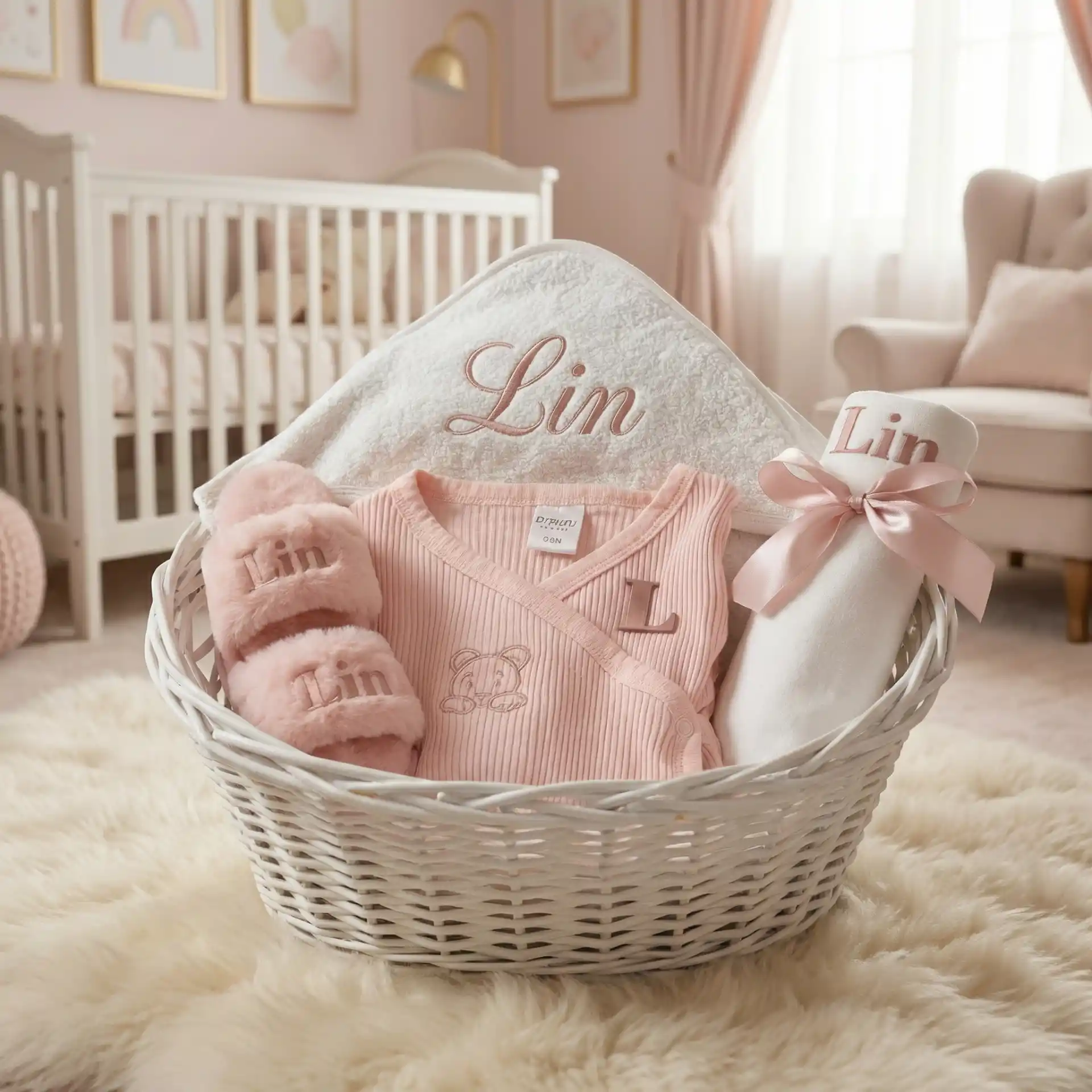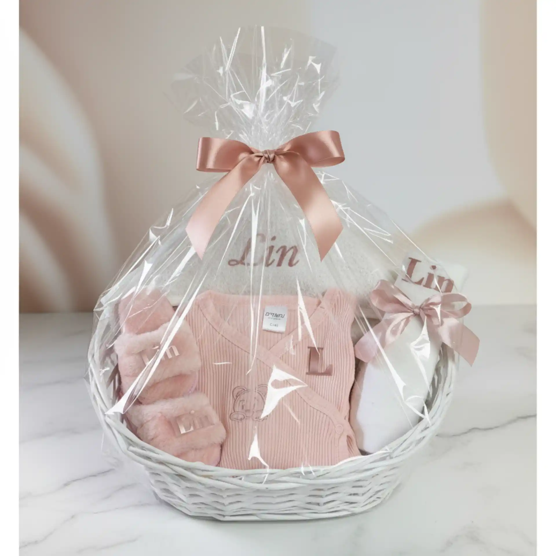 מארז מהמם לנסיכה , במארז יש מגבת קפוצ'ון 100% כותנה בגודל 70X75  , חליפת וופל מושלמת חיתול פלנל וזוג נעלי בית מתוקות והכל ממותג שם .
